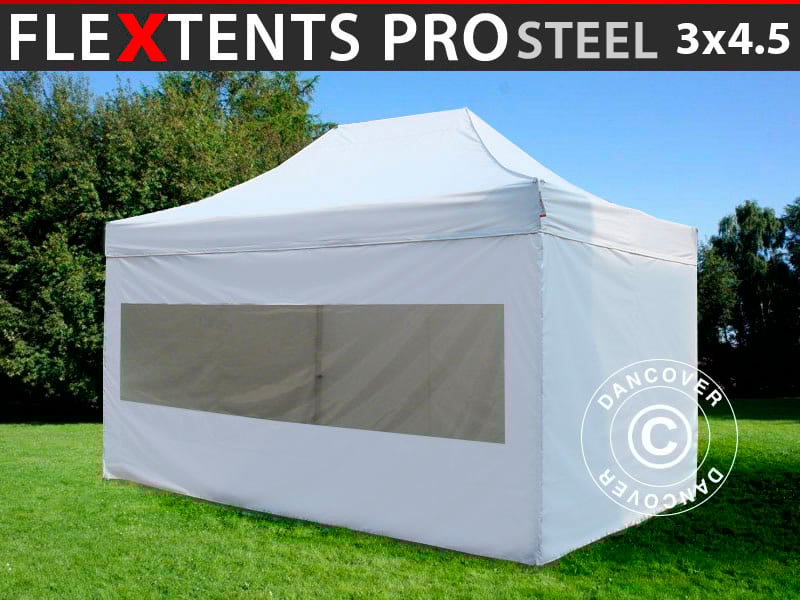 Snabbtält Depåtält Easy-up tält Eventtält Partytält FleXtents PRO Steel 3x4,5m, Vit, inkl. 4 sidor