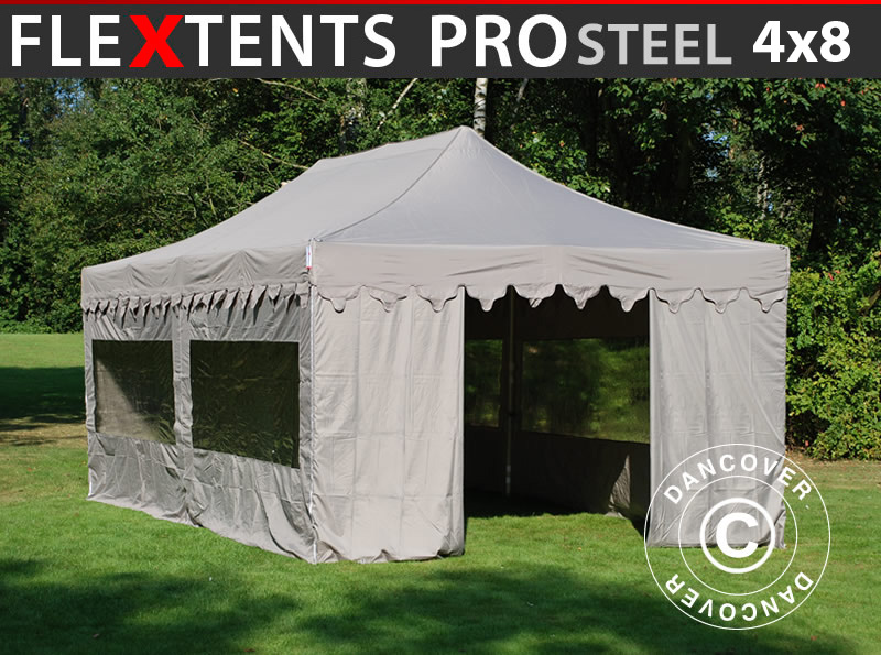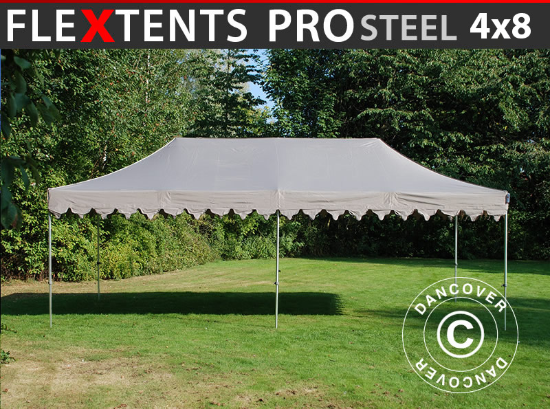 Snabbtält Depåtält Easy-up tält Eventtält Partytält FleXtents PRO Steel "Peaked" 4x8m Latte, inkl. 6 sidor