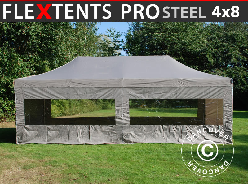 Snabbtält Depåtält Easy-up tält Eventtält Partytält FleXtents PRO 4x8m Grå, inkl. 6 sidor