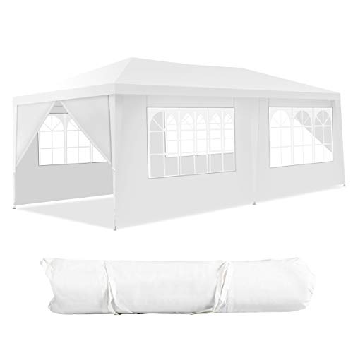 GOPLUS 3 x 9 m partytält, paviljongstält med fönster, festtält med metall – konstruktion, vikbar paviljong av PE-presenning, med avtagbara sidoväggar, för festbröllop, vit