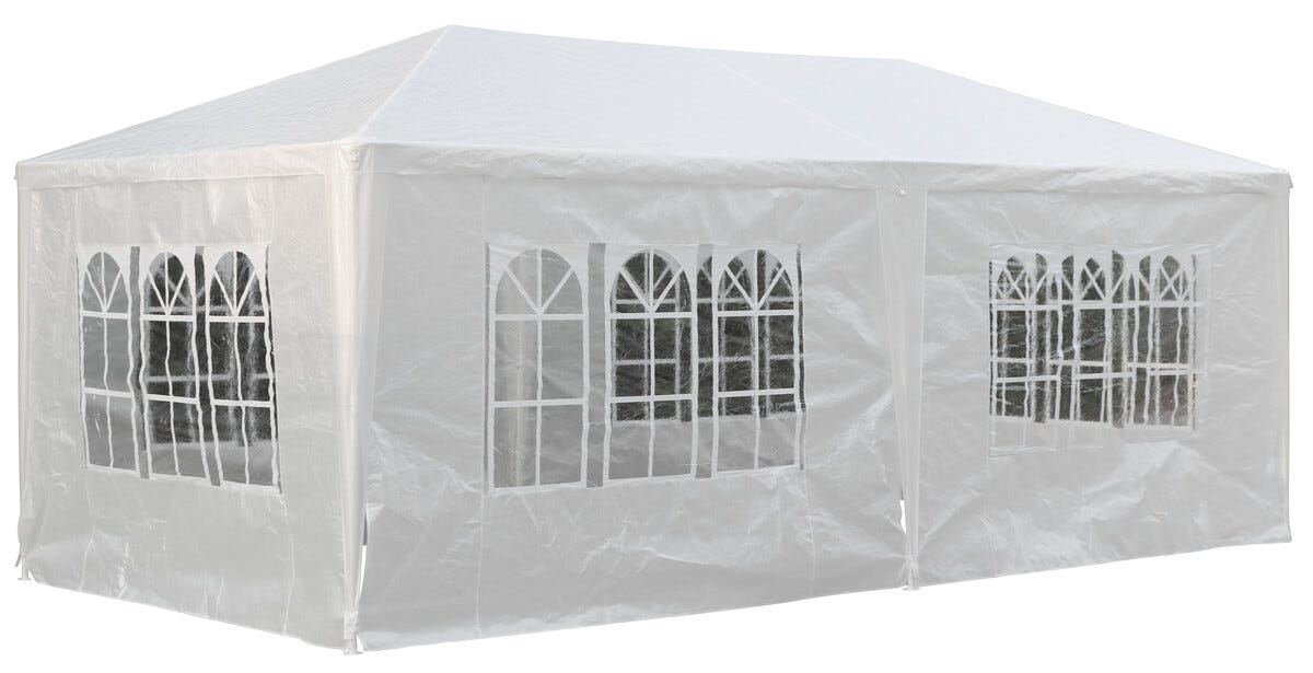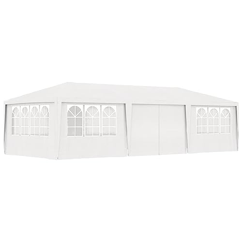 Rantry Professionellt partytält med väggar vit 90 g/m² 4 x 9 m anti-UV och vattentät lusthus trädgård paviljong för camping, fester, utomhus