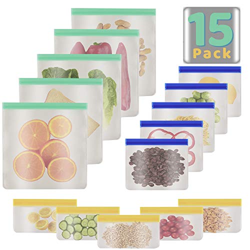 Dimono® Silikonpåsar Återanvändbara Zip-påsar Mat- och frysväskor Tryckförsegling Lanseringspåse för grönsaker, frukt, kött och konfektyr (5x 750 ml; 5x 1000 ml; 5x 1800 ml)