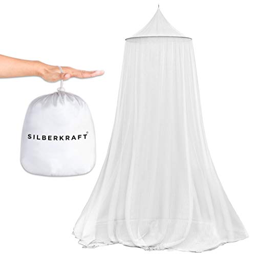 Silverkraft myggnät XXL för dubbelsäng – myggnät med dragkedjeöppning, inklusive självhäftande krokar, lämplig för resor och hemma, finmaskigt nät, med påse för förvaring