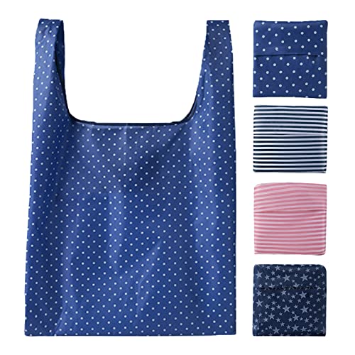 TSHAOUN 4-pack hopfällbara shoppingväskor återanvändbara miljövänliga livsmedelsväskor, vattentålig shoppingkasse, shoppingkasse tygväska med fickor, fälls i bifogad påse för förvaring, 4-pack, 55 *