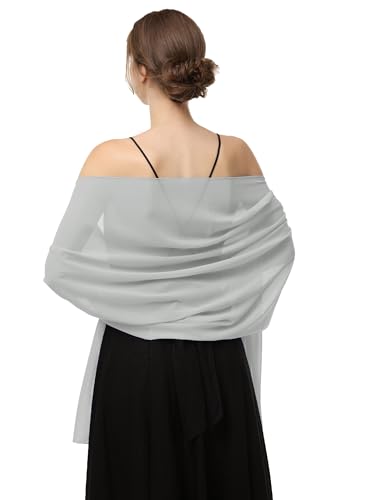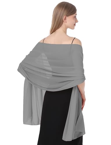 Baoqiya Damsjalar och sjalar för aftonklänning, chiffongsjal, mjuk elegant silkeslen pashmina-tyg, bröllops-/brudsjal, Grå, Length(79") * Width(19")