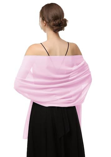 Baoqiya Women's Shawls and Wraps for Evening Dress Chiffon Shawl Soft Elegant Silky Pashmina Wedding Bridal Scarf(Pink, 79"×19")