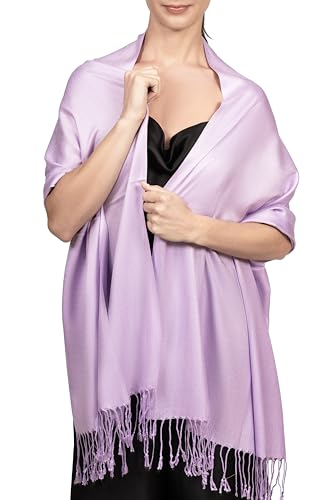 Achillea Soft Silky Pashmina Scarf for Women – Shawl Wrap for Evening Dresses, Bridesmaids, Weddings & Everyday Wear (Light Lavender)