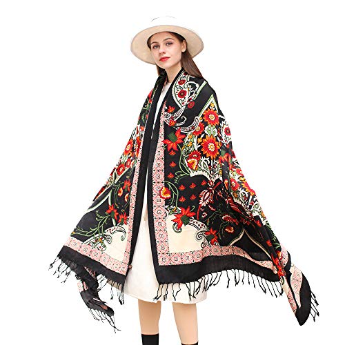 DANA XU 100% Merino Wool Extra Large Pashmina Blanket Travel Scarf Cashmere Wrap for Women Fall Winter Oversize Shawl Floral