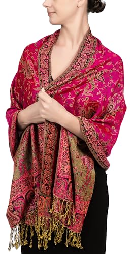 Achillea Soft Silky Pashmina Scarf for Women – Shawl Wrap for Evening Dresses, Bridesmaids, Weddings & Everyday Wear (Fuchsia)