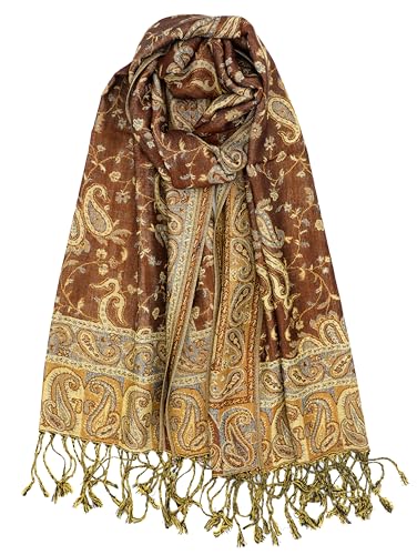 ufash Pashmina halsduk i 100 % silke från Indien för kvinnor och män, Paisley-mönster, 160 x 35 cm – halsduk i rent silke – olika mönster, BRUN, 160x35
