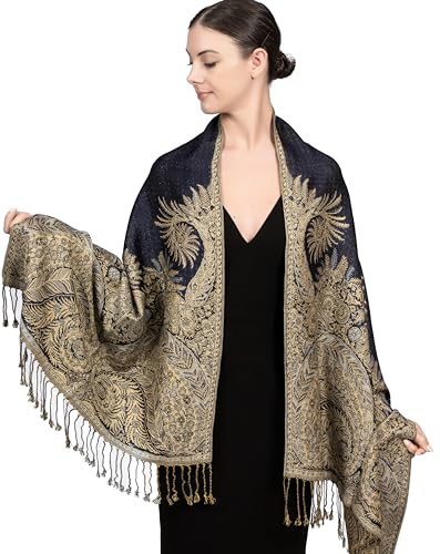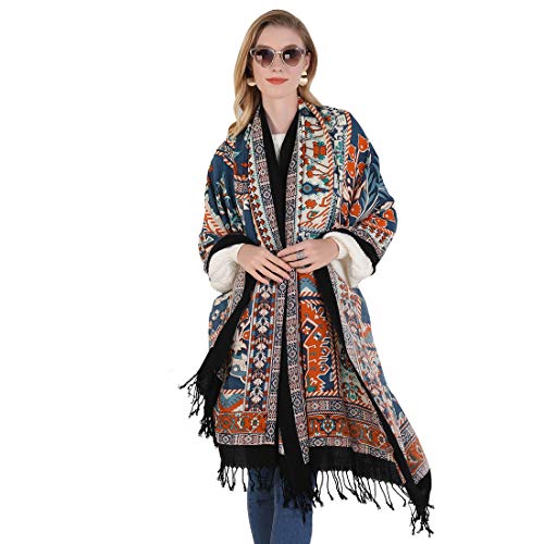 DANA XU Pashmina halsduk, 100% ren ull, för kvinnor, traditionell, kultur, stor (svart) – flerfärgad –, Blue20, 96 * 43inch
