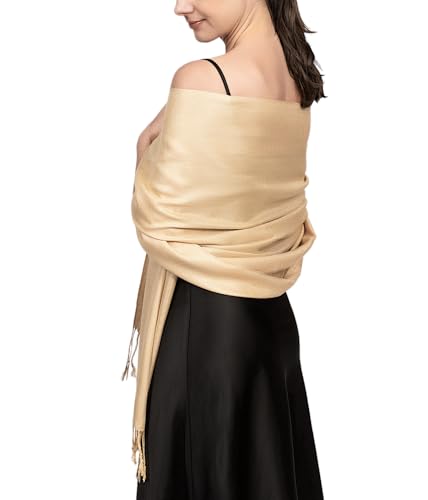 Achillea Soft Silky Pashmina Scarf for Women – Shawl Wrap for Evening Dresses, Bridesmaids, Weddings & Everyday Wear (Champagne)