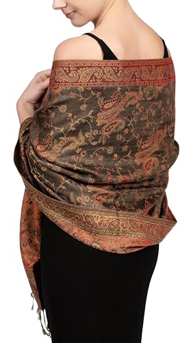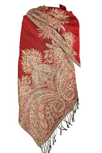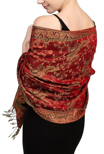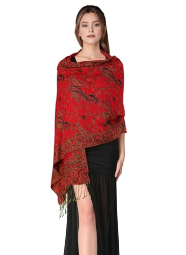 PASKMLNA Damer Paisley Pashmina halsduk, Rött paisleymönster, L