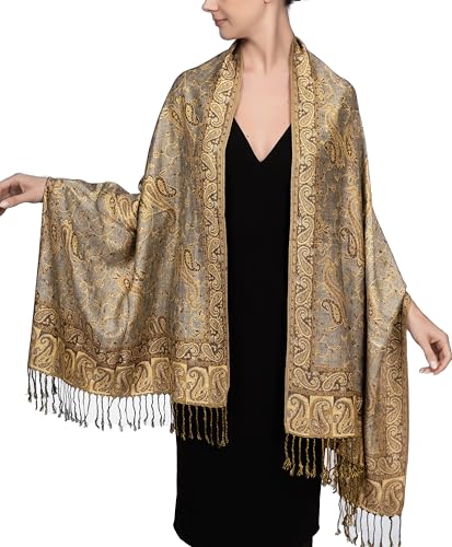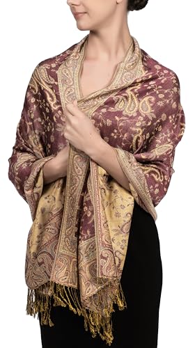 Achillea Two Tone Vintage Jacquard Paisley Pashmina Shawl Wrap Scarf (Champagne)