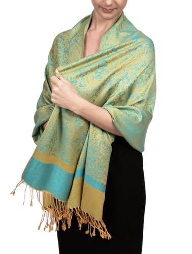 Achillea Two Tone Vintage Jacquard Paisley Pashmina Shawl Wrap Scarf (Aqua)