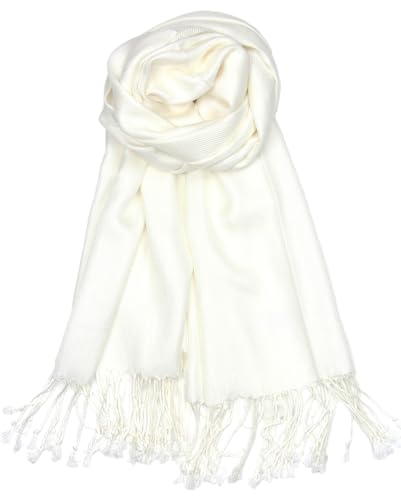 Achillea Soft Silky Pashmina Scarf for Women – Shawl Wrap for Evening Dresses, Bridesmaids, Weddings & Everyday Wear (Ivory)