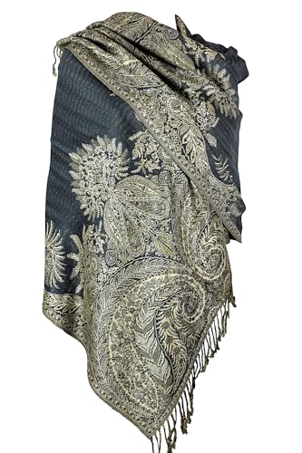 Achillea Pashmina sjal kvinnor, Kolgrå, 80" X 28'