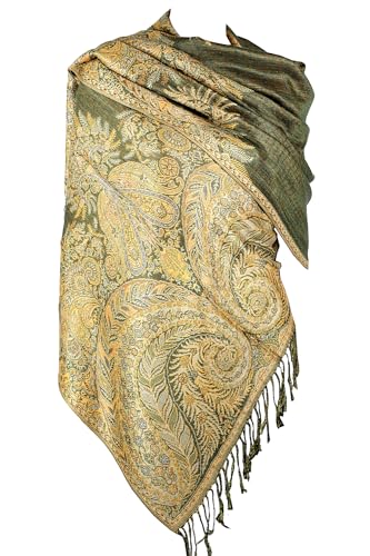 Achillea Pashmina sjal kvinnor, Olivgrön, 80" X 28'