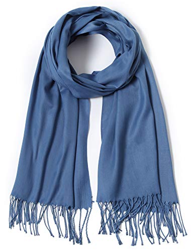 Pashmina sjalar och sjalar stora halsdukar för kvinnor bröllopsfest brud långt mode solid sjal med fransar, Denim blå, One Size