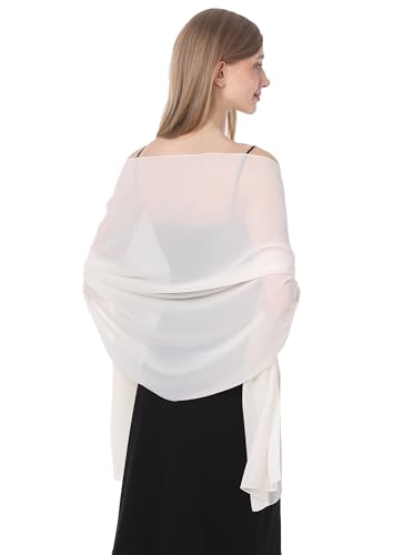 Baoqiya Damsjalar och sjalar för aftonklänning, chiffongsjal, mjuk elegant silkeslen pashmina-tyg, bröllops-/brudsjal, Vitt, Length(79") * Width(19")