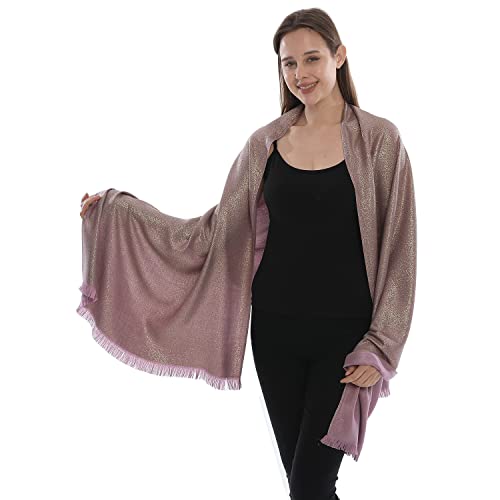 LMVERNA Dam glittrande metalliska mjuka pashminasjalar och wraps halsduk i enfärgade färger, Hudlila – guld, M