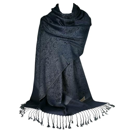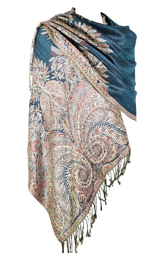 Achillea Two Tone Vintage Jacquard Paisley Pashmina Shawl Wrap Scarf (Steel Blue)