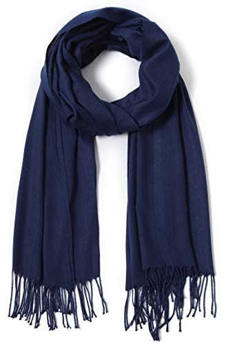 Cindy & Wendy Pashmina sjalar och wraps stora halsdukar för kvinnor bröllopsfest brud långt mode solid sjal wrap fransar, Marinblått Xsp, one size
