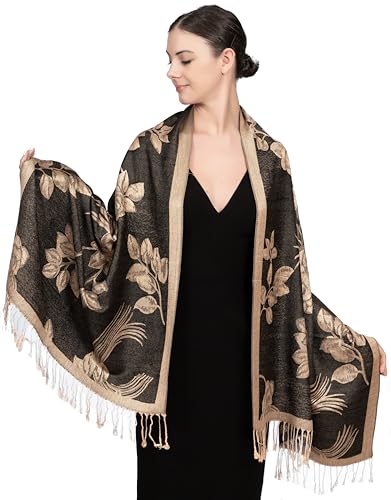 DANA XU Women's 100% Mulberry Silk Pashmina Shawl and Wraps Extra Large Floral Scarf for Evening Dresses, Soft Oversized