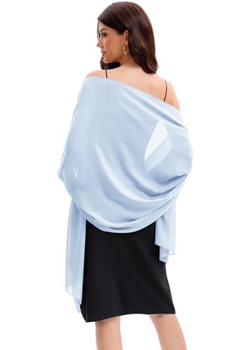 Baoqiya Damsjalar och sjalar för aftonklänning, chiffongsjal, mjuk elegant silkeslen pashmina-tyg, bröllops-/brudsjal, Himmelsblått, Length(79") * Width(19")