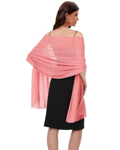 Baoqiya Damsjalar och sjalar för aftonklänning, chiffongsjal, mjuk elegant silkeslen pashmina-tyg, bröllops-/brudsjal, Korall, Length(79") * Width(29")
