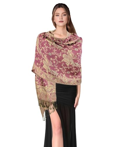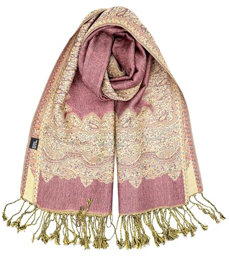 PASKMLNA Damer Paisley Pashmina halsduk, Rosa paisleymönster, L