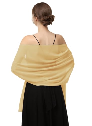 Central Chic vacker silkeslen halsduk pashmina halsduk för bröllop, brudtärnor, brud, fester, bröllopsgäster – champagne, Champagne guld, one size