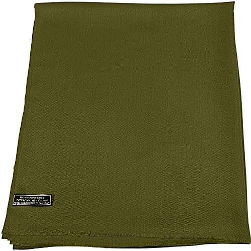 CJ Apparel Enfärgad Design Nepalesisk Frans Sjal Sekunder Sjal Sjal Sjal Prydnad Huvudsjal Ansiktsskydd Pashmina NY, Olivgrön, one size