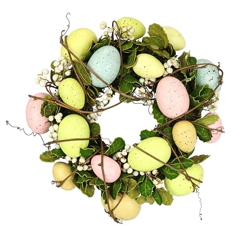 Äggkrans av rotting med ägg och torkade blommor, dekoration, påsk, vår, krans, iskrans, påskkrans, vårkrans, dörrkrans, väggkrans, bordsdekoration, dekorationer, hängande, välkomstskylt, pysseltillbehör