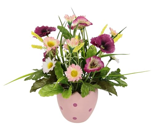 Flair Flower konstgjorda blommor penséer prästkragar i kruka ägg 22 cm påskarrangemang påskdekoration påskägg bordsdekoration påsk konstgjord vårblomma oäkta blommor vårdekoration miniblommor, rosa