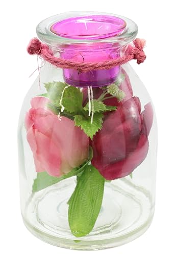 Dekorativt glaskärl med värmeljushållare och tulpaner, dekorerade konstgjorda blommor, ljusstake, värmeljus, stearinljus, humörljus, påskdekoration, hemtillbehör, dekoration, påsk, gåva, dekorativt