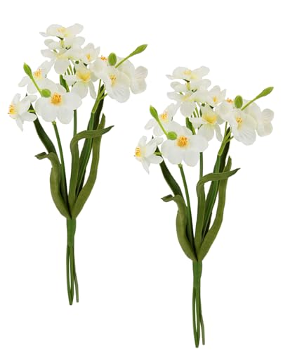Flair Flower konstgjorda påskliljor vårblommor konstgjorda blommor buketter blomarrangemang dekoration vårdekoration påskdekoration påskklocka påsk bordsdekoration dehead lans set om 2, vit