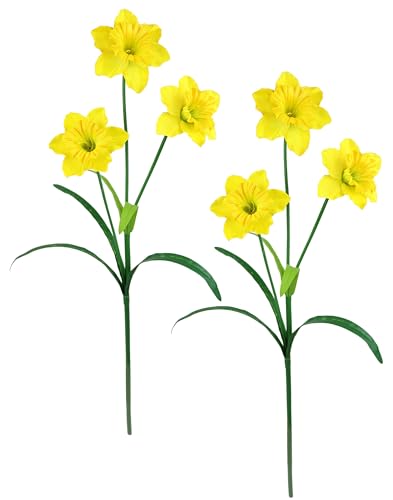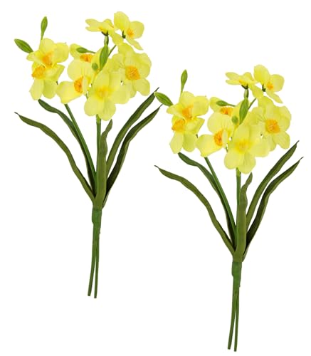 Flair Flower konstgjorda påskliljor vårblommor konstgjorda blommor buketter blomarrangemang dekoration vårdekoration påskdekoration påskklocka påsk bordsdekoration dehead lans set om 2, gul