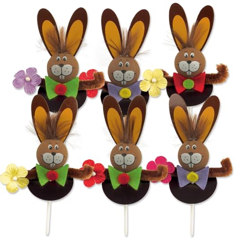 Günthart 100 stycken | Chenile-insticks påskhare | brun | för påskperioden | med blommor | röd, gul, rosa, lila | att fästa i kakor och tårtor till påsk | tårtdekoration