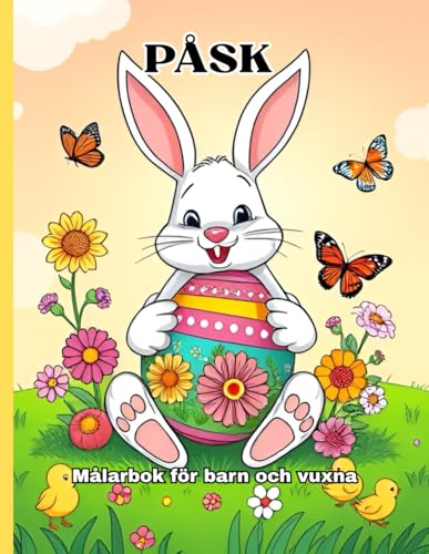 PÅSK Målarbok för barn och vuxna: Vackra målarbokssidor med påskägg, alla älskade kaniner, ankor, andra små djur och blommor