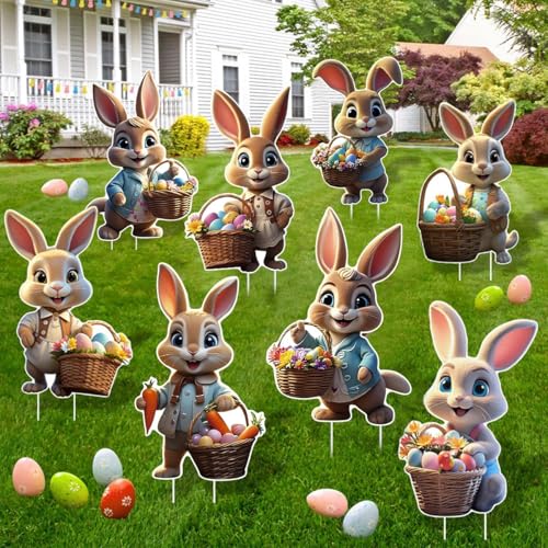 GTJEOI 8 Stycken Skyltar Påsk Trädgårdsskyltar, Påsk Gård Skyltar, Trädgårdsskyltar, Påsk, Påsk Trädgård, Dekorationer För Hem Utomhus Gräsmatta Fest
