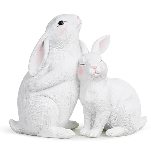 Hodao påsk lyckligt par harts kanindekorationer – perfekt för att leverera glada leenden – vårpåsk inomhus heminredning kanindekor söt kanin påskdag par gåvor dekorationer (par kanin vit)