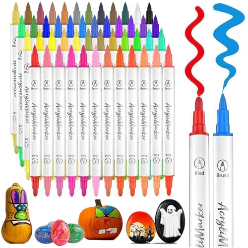 AOMEES Akrylpennor Med Dubbla Tips - 48 Färger Vattentäta Pennor för Stenar, Målning, Påsk Pyssel - Permanent Markör för Barn