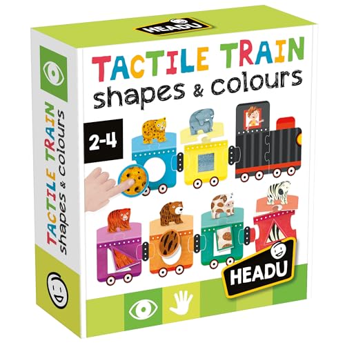 HEADU - Shapes & Colors Tactile Train - Original Trestegsundervisningssystem | Sensoriskt tåg för att lära sig former och färger, pedagogiskt spel för barn 2–4 år, påsk, julklapp, tillverkad i Italien