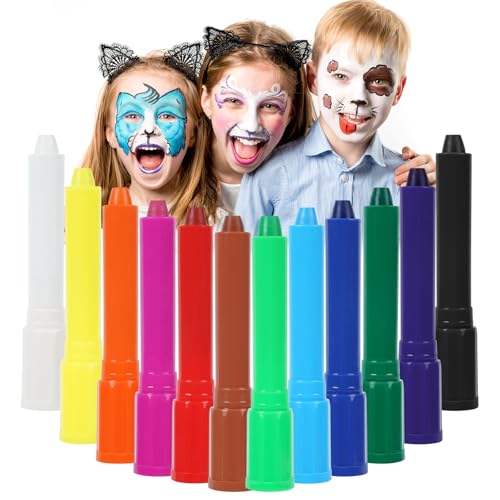URAQT Ansiktsmålarmarkör, 12-färger Kroppskritor Kit Giftfri ansiktskroppssminkfärg, Professionella ansiktsmålningskritor för barn Barn, Ansiktsmålarstiftset för påsk Cosplay Party Carnival