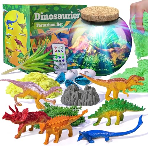 ONLYFUN dinosaurie terrarium set för barn-födelsedagspresent till pojkar flickor 4, 5, 6, 7, 8-12 år, dinosaurieleksaker, pyssel set, jul påsk presenter barn
