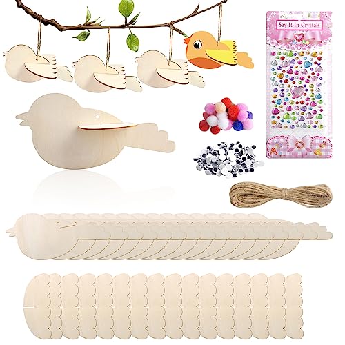 3D-fåglar av trä pysselset, 16 st fåglar pysselset för barn, påsk, pyssel barn med klistermärken, kreativa pysselbehov, knåp, vår barn, fåglar, dekoration för trädgård, balkong, perfekta presenter