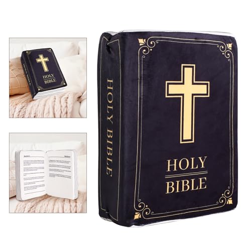 Bibelkudde, 33x22x9cm Bibelkudde i Sammet Bokplysch som kan Öppnas Bokformad Kudde Religiösa Dop Påsk Presenter för Kvinnor Män(Svart)