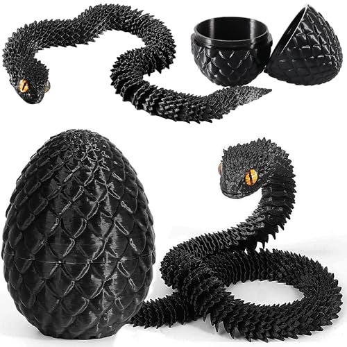 Joycabin 3D-tryckt ormleksak, påsk 3D-tryckt drakägg, ormägg, 3D-tryckta djur, leksaker för barn, presenter, skrivbord, heminredning (svart)