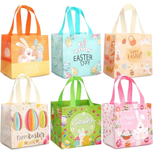 BELSVOR 6 stycken påskpresentpåsar, 6 st påskpåsar med handtag, påskpresentpåsar för ägg/presenter/morötter, påskpresentpåse 20 x 20 cm, presentpåse påsk för barn påsk